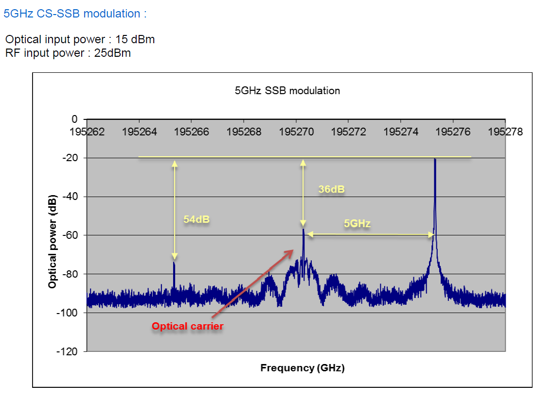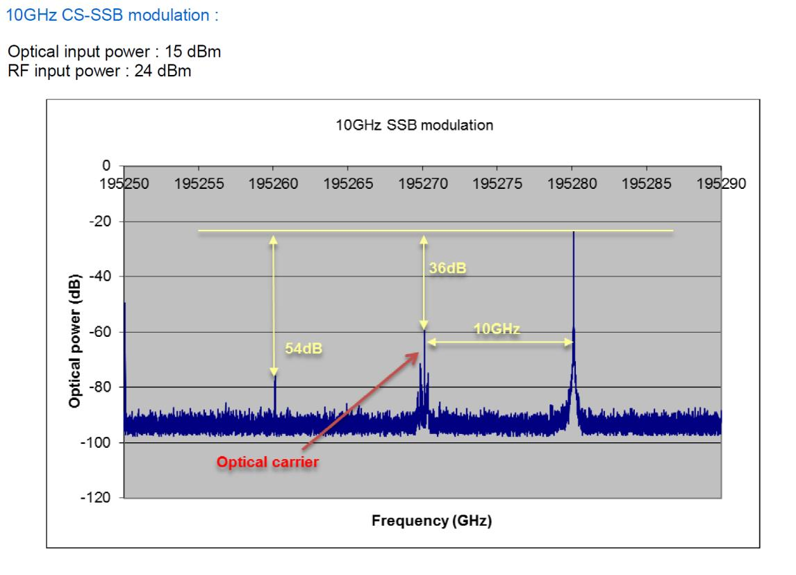 苏州mksport体育光电科技有限公司提供完整的载波抑制单边带调制(Carrier Suppression Single Side Band)方案。基于法国iXblue高消光比、高抑制比、高载波衰减的高性能铌酸锂IQ调制器(MXIQER-LN-30),提供高达32dB载波衰减、边带衰减,是目前市面上针对于单边带调制应用性能最好的调制器之一。