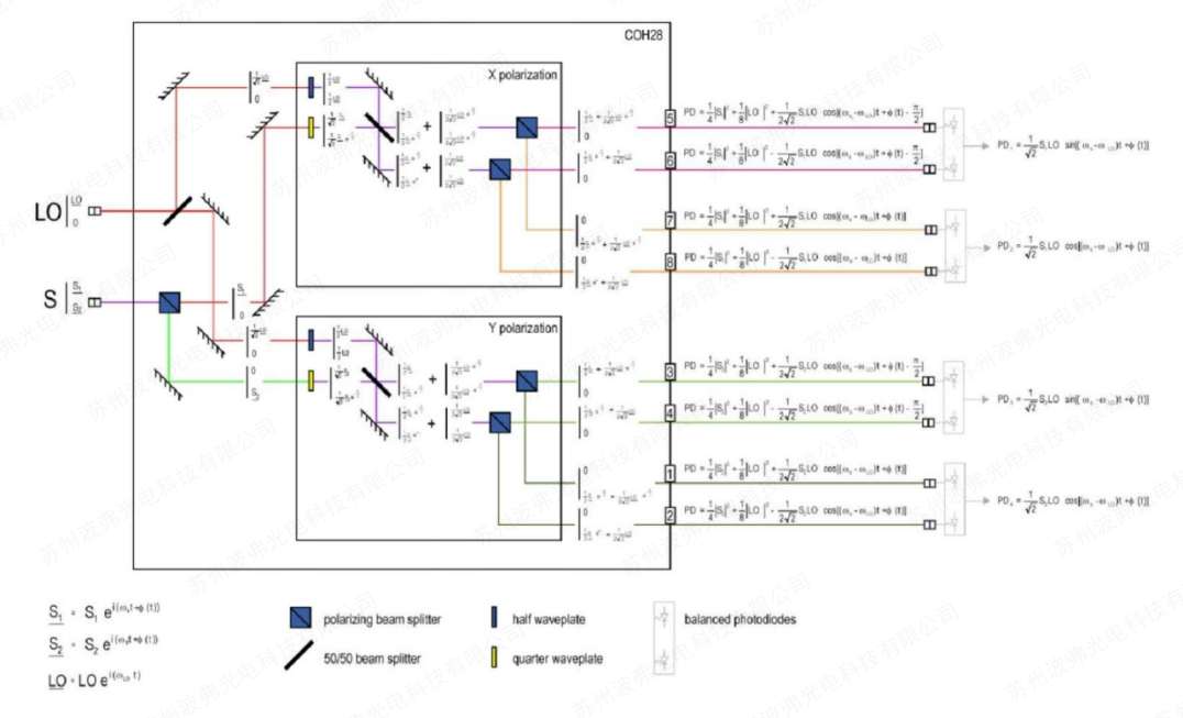 COH28和COH28-X基于两个单偏振90°光混频器,能够从具有任何偏振的信号中提取相位、幅度和偏振。