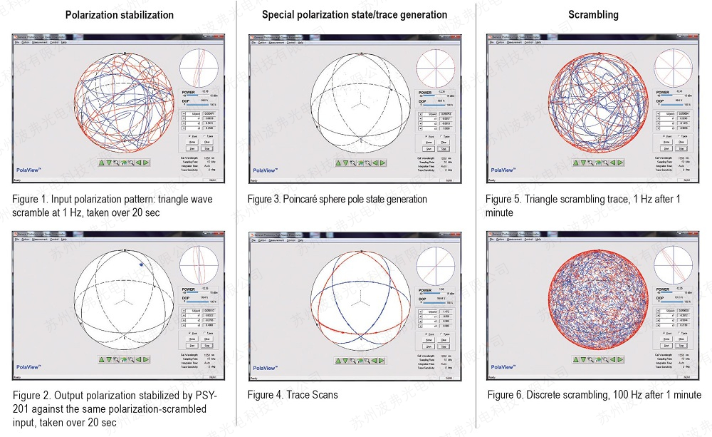 其他偏振控制功能包括编程的SOP轨迹和使用不同加扰模式的可变速率偏振加扰。
